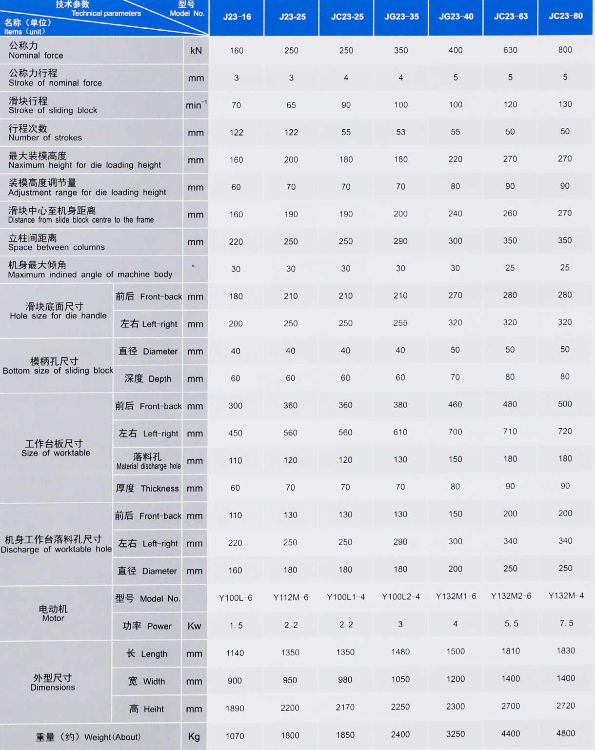 曲轴横放结构,V型导轨,结构简单,调整维修方便;