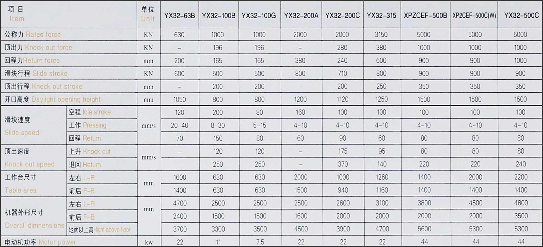 移动工作台 | 冲裁缓冲装置 | 光电保护装置 | 换模用浮动导轨和滚动托架 | 模具快速夹紧机构 |